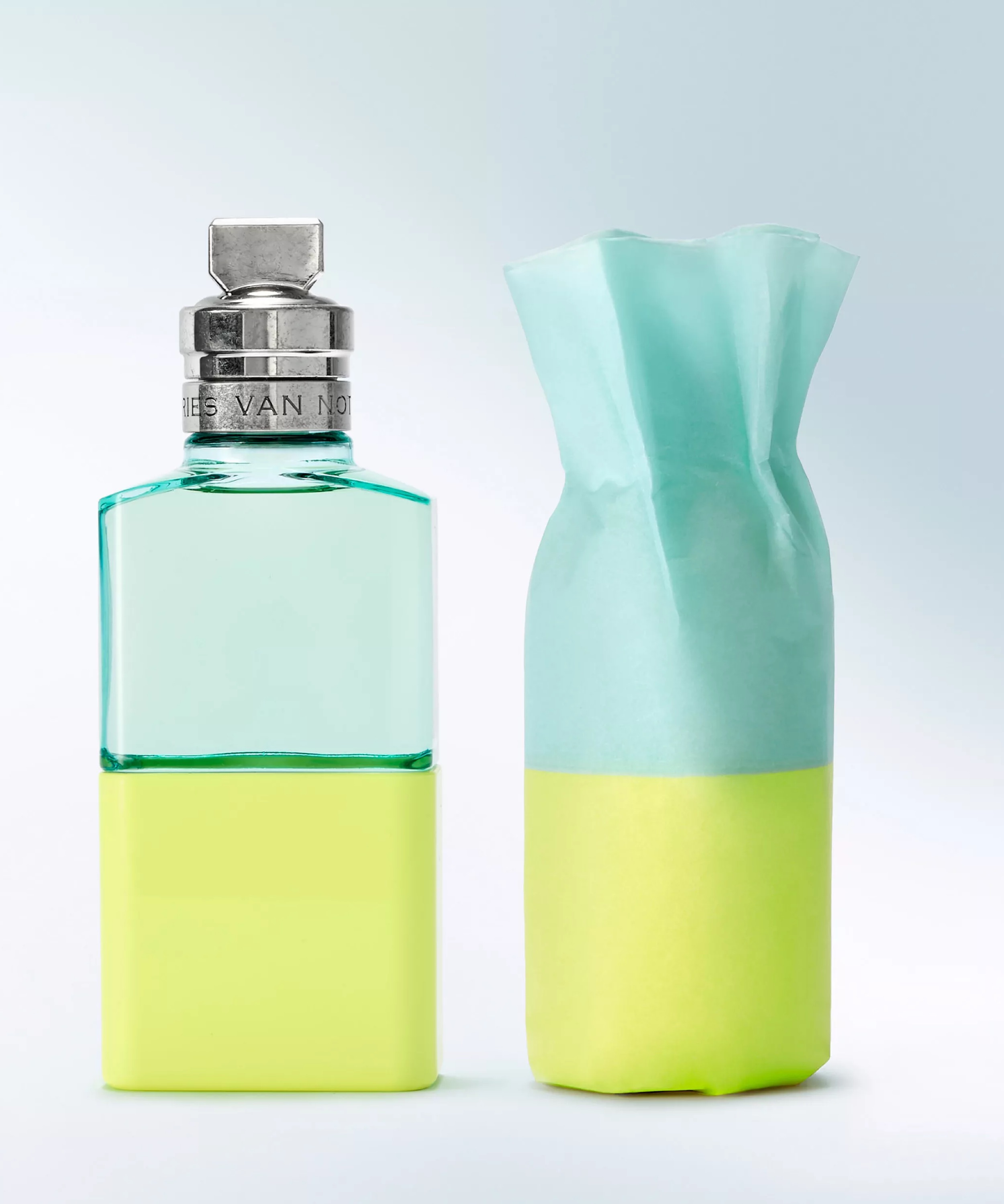 DRIES VAN NOTEN NEON GARDEN (НЕОН ГАРДЕН или НЕОНОВЫЙ САД) – элегантный и радостный аромат. Флакон с цветными блоками, неоново-зеленая основа и небесно-голубое стекло. «Я хотела выразить нетрадиционный классицизм с помощью ириса, из корня ириса, который так элегантен и от кутюр. Но я хотела встряхнуть его, взбудоражить энергией мяты». — Фанни Баль, парфюмер.