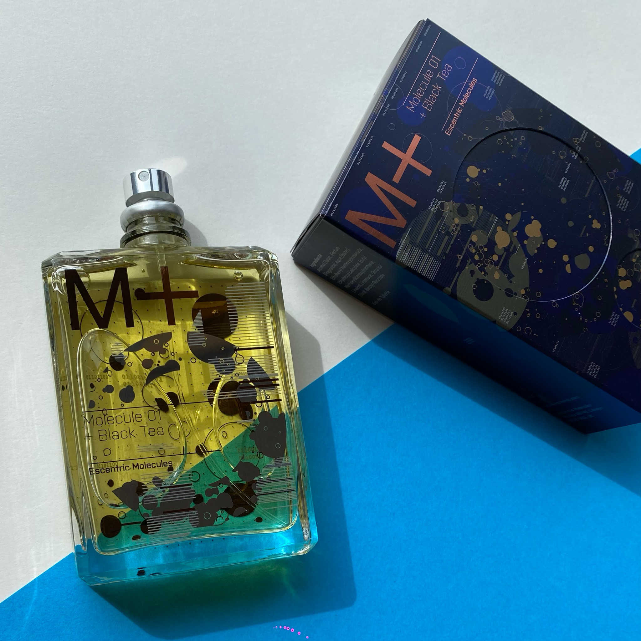 Escentric Molecules Molecule 01 + Black Tea — оригинальный унисекс-парфюм, выпущенный в 2023 году британским нишевым парфюмерным брендом Escentric Molecules. Своим выходом аромат пополнил коллекцию M+ Collection. В основе композиции лежит синтетическая молекула Iso E Super (70% состава), характеризующаяся нотой кедрового дерева с теплым, бархатистым ощущением кокона.